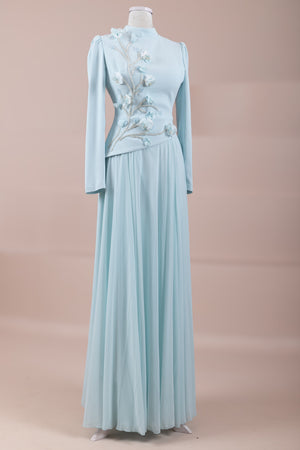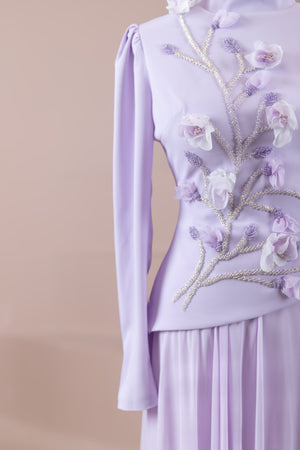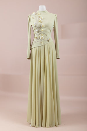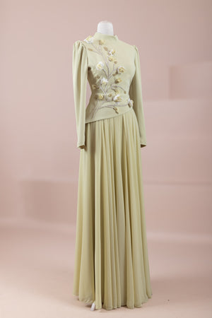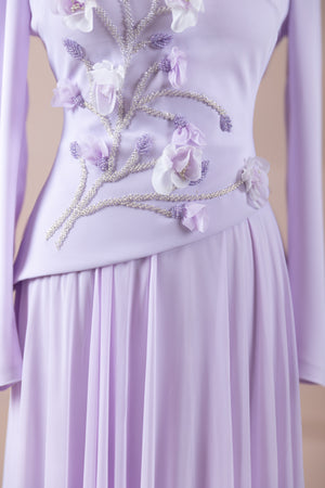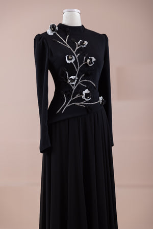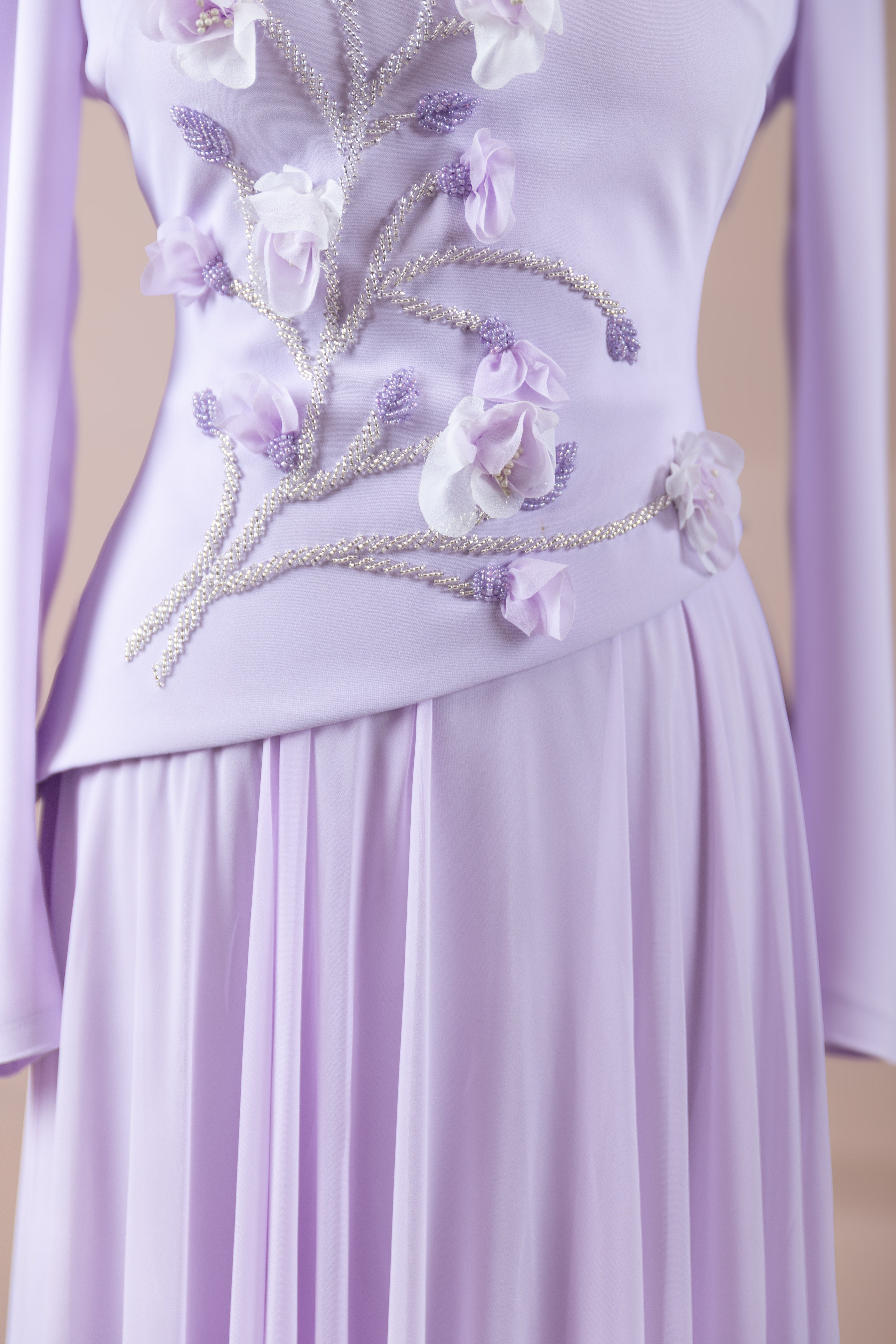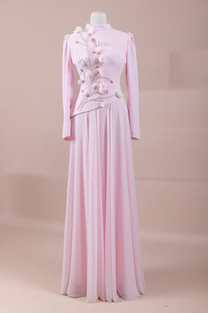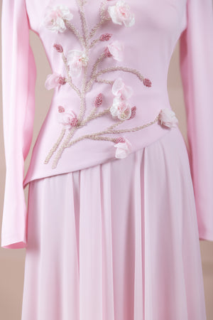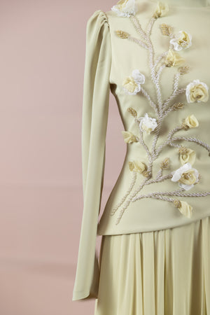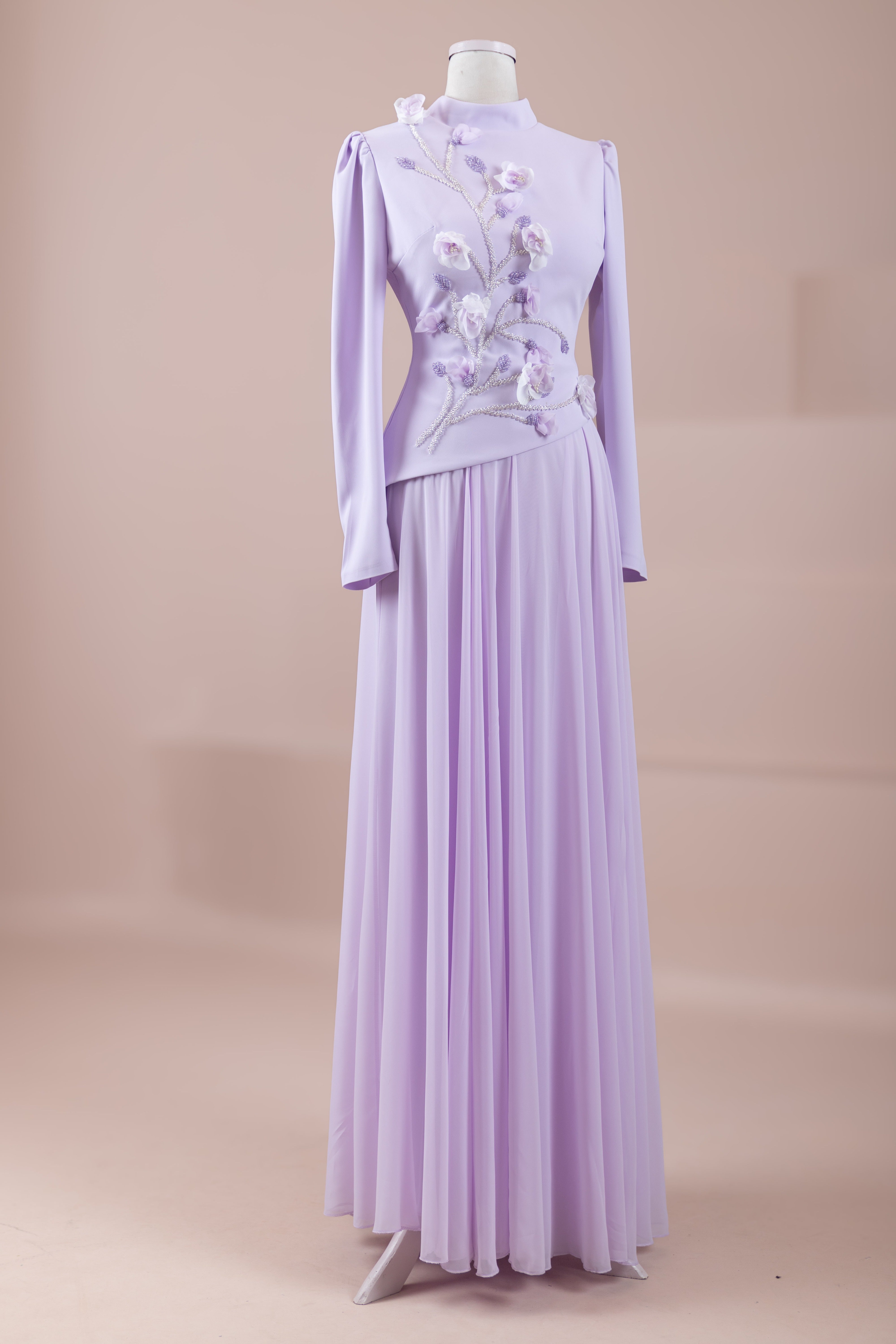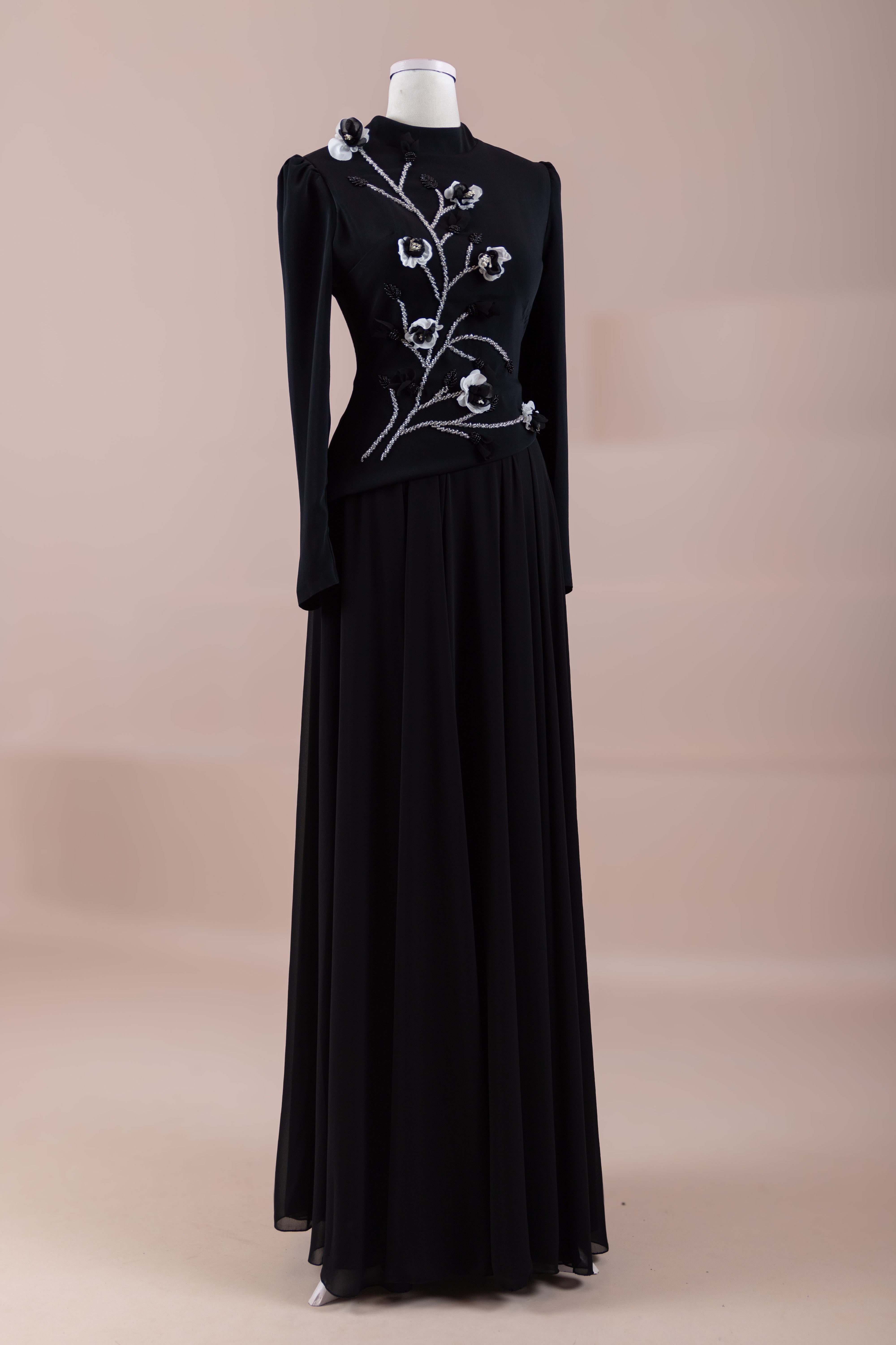 – Göğüs ve bel hattında zarif çiçek motifli işlemeler