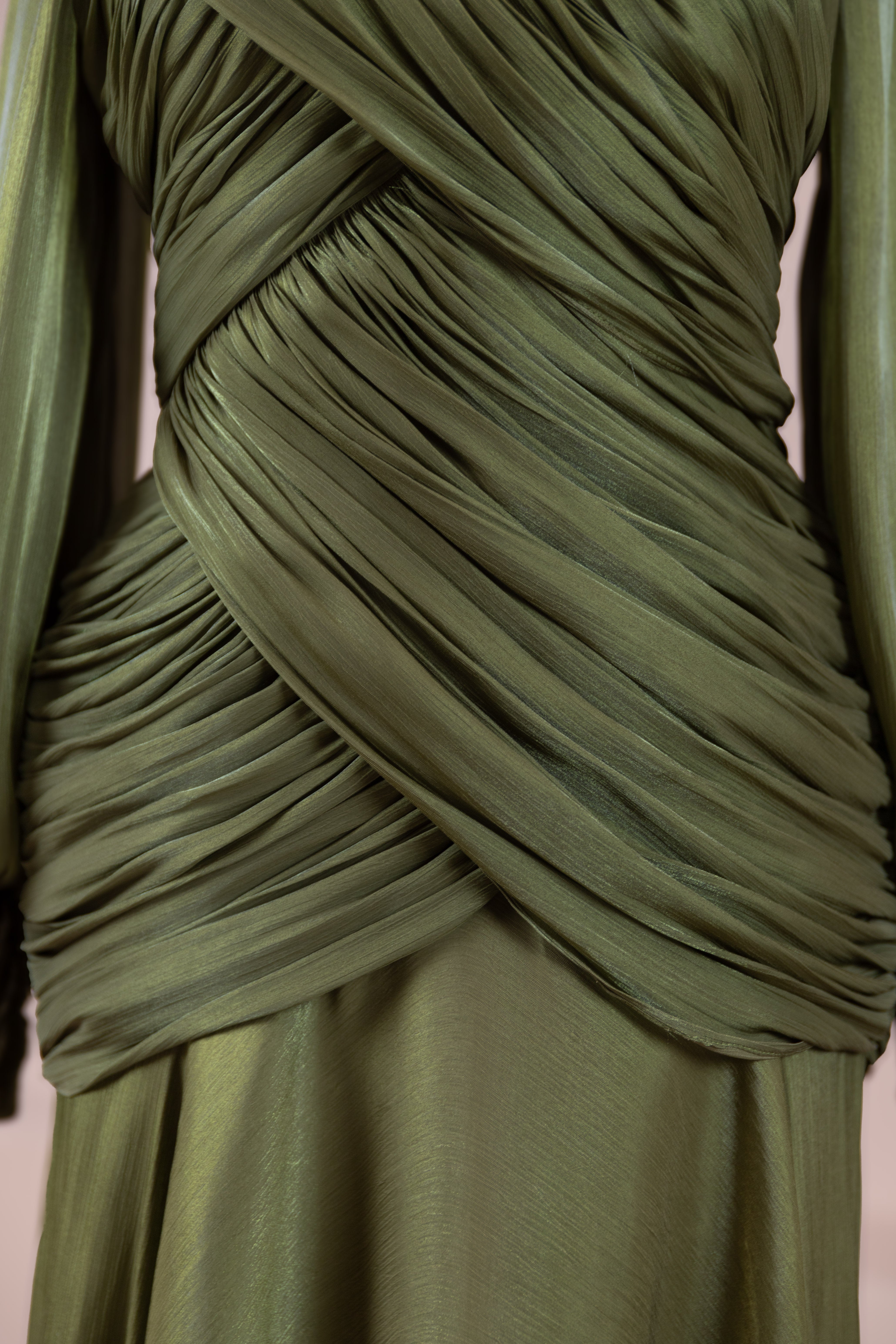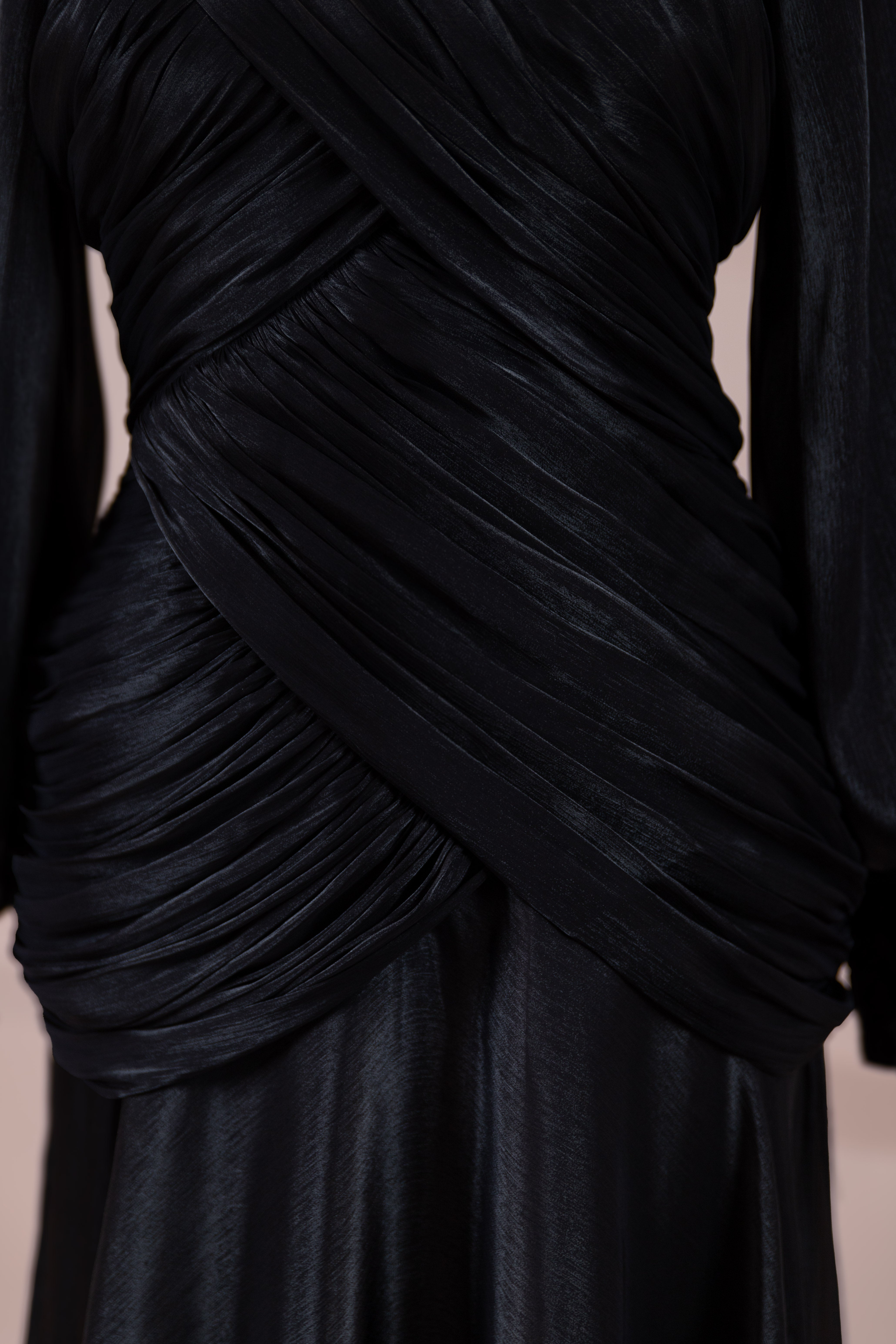 Göğüs ve bel kısmında çapraz drape tasarım